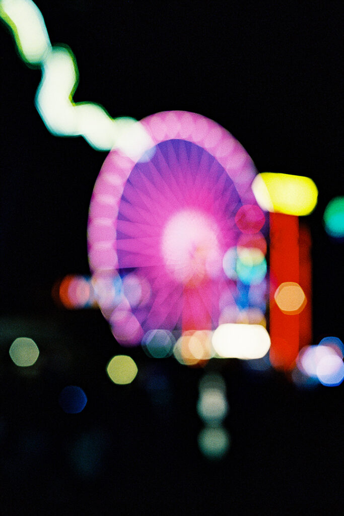 Vor seinem Urlaub hat sich Kollege Valentin bei uns im Labor noch flink ein paar Röllchen kunstlichtstarken Film aufgespult. Zum Glück! Denn so konnte er richtig schön dick mit diffusem Licht auftragen und das beschwingte Fahrgeschäft auf dem Prater in Wien mit wenigen, markanten Farbstrichen auf Film nachzeichnen. Reduced to the max!